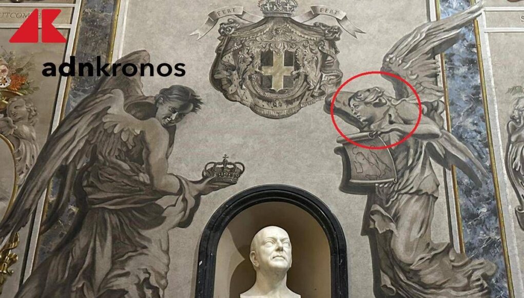 (Adnkronos) – Un angelo con il volto di Giorgia Meloni, in una basilica in pieno centro a Roma: a San Lorenzo in Lucina, dove è in corso un importante restauro, il volto della premier è apparso in una cappella della basilica, vicino alla sagrestia: su un muro, con al centro il busto di Umberto II, l’angelo di sinistra tiene in mano la corona reale, mentre l’angelo di destra, con un volto che assomiglia a quello del presidente del Consiglio, tiene fra le mani una pergamena, su cui è raffigurata l’Italia: “La vollero i monarchici”, racconta monsignor Daniele Micheletti, responsabile della basilica.