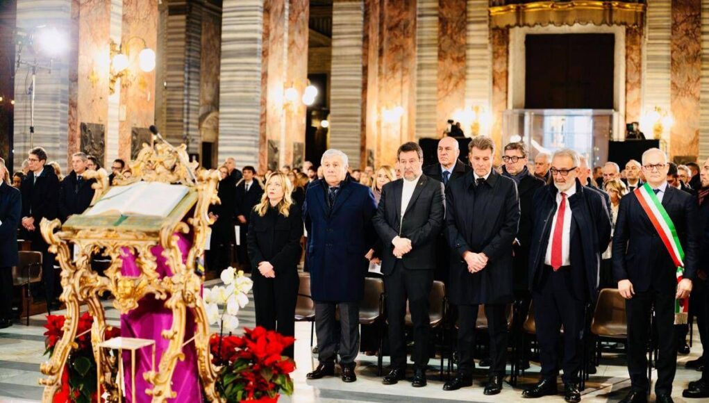 Giorgia Meloni in prima fila, nella chiesa dei Santi Ambrogio e Carlo al Corso, per la funzione a Roma in memoria delle vittime di Crans-Montana. Al fianco della premier il ministro degli Esteri Antonio Tajani e l’altro vice premier Matteo Salvini, nella stessa fila del sindaco di Roma Roberto Gualtieri, che indossa la fascia tricolore. Sempre in prima fila in chiesa, nell’altra fila di banchi, la leader del Pd Elly Schlein con al suo fianco l’ex premier Giuseppe Conte. Con loro, il presidente del Senato Ignazio La Russa e il vice presidente della Camera Fabio Rampelli. Gli altri leader di opposizione, Nicola Fratoianni e Angelo Bonelli, siedono alle spalle di Schlein. Tra gli altri, presenti molti esponenti di governo come Giancarlo Giorgetti, Alessandro Giuli, Alberto Barachini, Guido Crosetto, molti leader di partito come Maurizio Lupi e Riccardo Magi, rappresentanti di tutti i gruppi parlamentari. Tra gli scranni della chiesa anche Arianna Meloni. Â