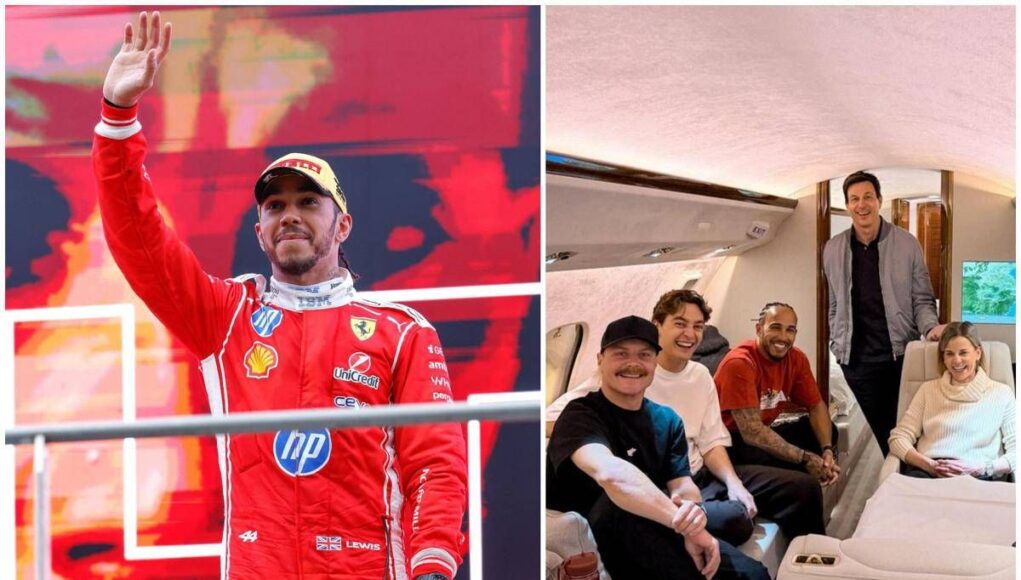 Per rientrare a casa dalla trasferta asiatica, Hamilton ha accolto l’invito del suo ex team principal, Toto Wolff, come ospite dell’aereo Mercedes. Il pilota britannico, sette volte campione del mondo di cui sei titoli proprio con la scuderia tedesca, è stato quindi immortalato in una foto che lo ritrae sorridente insieme a Toto Wolff, George Russell e Valtteri Bottas, suo ex compagno in Mercedes oggi in Cadillac.