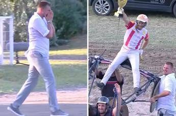 Nikola Jokic in lacrime dopo una vittoria, non nel basket ma nell'ippica. La stella serba dei Denver Nuggets non trattiene l'emozione dopo il trionfo del suo cavallo nella 'Dužijanka', prestigiosa corsa di trotto a Subotica. Jokic, 30 anni, in carriera vanta un titolo Nba e per 3 volte è stato Mvp della lega. I cavalli sono la sua seconda (prima?) passione: ne possiede almeno una quarantina e, quando non è impegnato nel basket, segue le gesta dei suoi pupilli negli ippodromi, anche in Italia. Mai, forse, ha festeggiato i suoi trionfi del basket con l'emozione mostrata oggi. Il fuoriclasse, dopo il trionfo firmato dal driver italiano Carmine Piscuoglio, è entrato in pista senza trattenere le lacrime: ha abbracciato il driver e gli altri membri dello staff prima di 'complimentarsi' con il cavallo, 'battezzato' con un nome traducibile più o meno con Demone dell'Est, secondo i media serbi —sportwebinfo@adnkronos.com (Web Info)