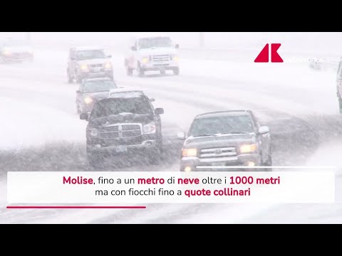 E’ ancora allerta rossa meteo su tre Regioni per l’ondata di maltempo che sta colpendo l’Italia. In Abruzzo e Molise fino a un metro di neve fresca oltre i 1000 metri di quota, ma con fiocchi fino a quote collinari. Forti temporali su buona parte del Centro-Sud.