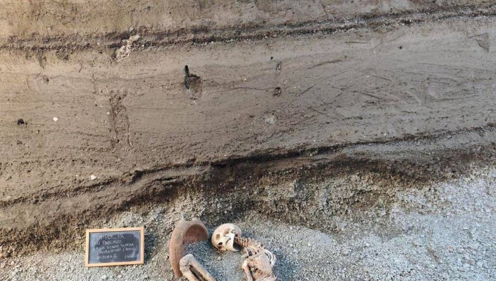 Un uomo è stato ritrovato con un mortaio di terracotta, che sembra essere stato utilizzato come protezione durante la caduta di lapilli e frammenti vulcanici. Il gesto richiama le descrizioni di Plinio il Giovane, testimone oculare, che in una lettera riferisce come le persone in fuga dal vulcano cercassero di difendersi dal materiale eruttivo con cuscini legati sulla testa. Il rinvenimento è avvenuto durante recenti scavi nell’area della necropoli di Porta Stabia, appena fuori le mura dell’antica Pompei, condotti nell’ambito del completamento dell’indagine sulla tomba a schola di Numerius Agrestinus Equitius Pulcher. Gli archeologi impegnati sul campo hanno portato alla luce i resti di due uomini che tentarono di fuggire verso la costa durante l’eruzione del Vesuvio del 79 d.C. I due individui, morti in momenti diversi dell’eruzione, offrono nuovi elementi per comprendere le dinamiche dell’evento e le condizioni affrontate dagli abitanti nelle vie di fuga.